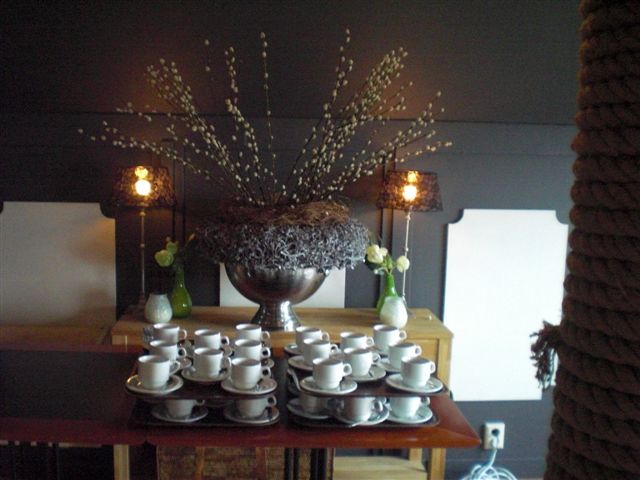 Vanuit Franeker is het toch wel een uur en een kwartier rijden naar Uitgeest, helemaal in deze, naar Hollandse begrippen, extreme winter. Toch arriveerden we redelijk op tijd in het Havenrijk. Helemaal in de jachthavensfeer. Daar hebben ze blijkbaar de oude vloot gebruikt om het interieur te verfraaien. Of was het een geïmproviseerde winterstalling? Als je een Zestienkwadraat eenmaal hebt doorgezaagd, is het varen natuurlijk wel voorbij, maar boven stond een heel aardig uitziend Vrijheidjachtje, dat kon volgens mij zo weer te water. Aan de muur hing ergens het voorstuk van een oud zwanenbootje. Gewoon van hout, niks polyester in een mal smeren.