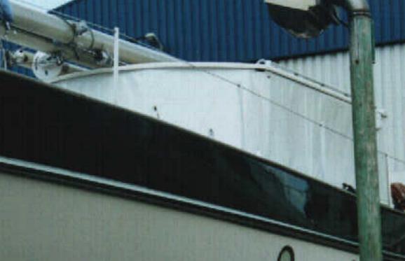 Voor alle bezitters van een Dartsailer is het onderhoud van het karakteristieke teakhouten stuurhuis een regelmatig terugkerende hoeveelheid werk. Na verloop van tijd is het geheel kaal halen en volledig opnieuw lakken (6 tot 9 lagen) van de buitenkant onvermijdelijk. De invloed van weer en wind, met name het UV licht, zijn hier de grootste boosdoeners. Om deze oorzaak uit te sluiten heeft een eigenaar het teakhout volledig afgedekt met een aantal zeiltjes die na gebruik van het schip eenvoudig kunnen worden aangebracht door middel van een zogenaamde caravanrail aan de onderzijde van het stuurhuisdak en een aantal clips van rvs of kunststof waarmee de zeiltjes aan de onderzijde worden vastgezet. Ook voor de winterstalling biedt dit een goede oplossing. Deze foto’s en tekeningen zijn van een DS38. Voor een DS30 is een dergelijke oplossing ook al eens gemaakt. Het werkt tot volle tevredenheid van de eigenaren en scheelt enorm in het onderhoud!