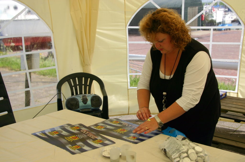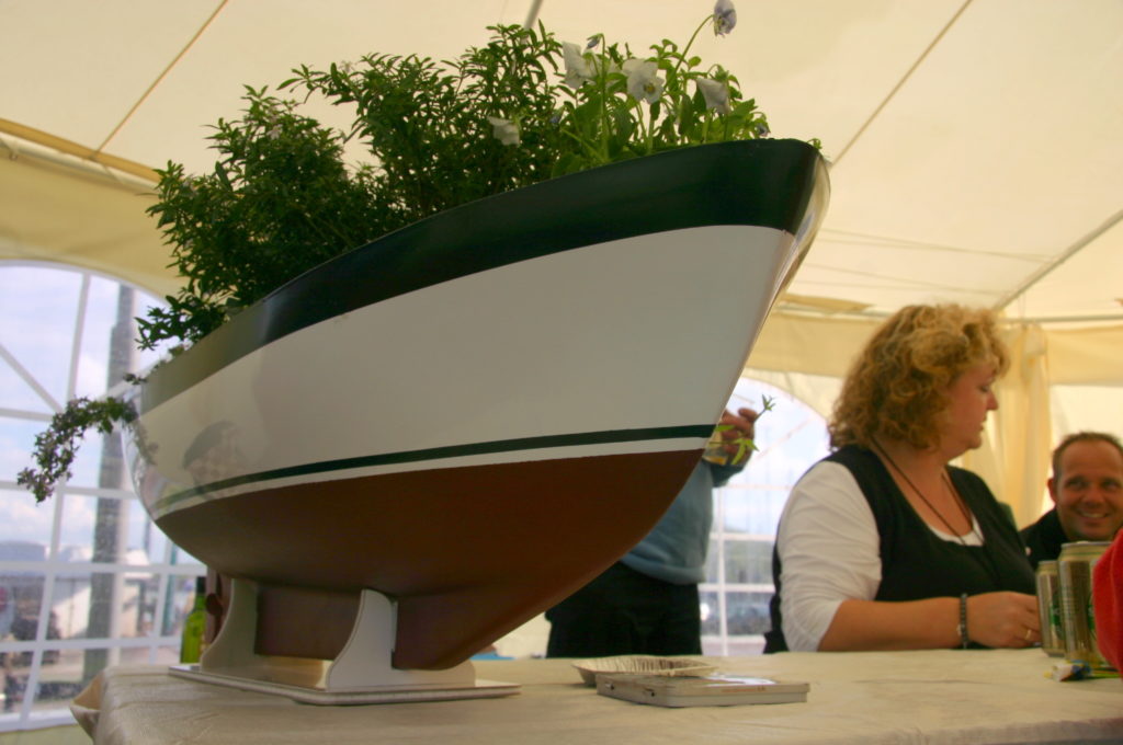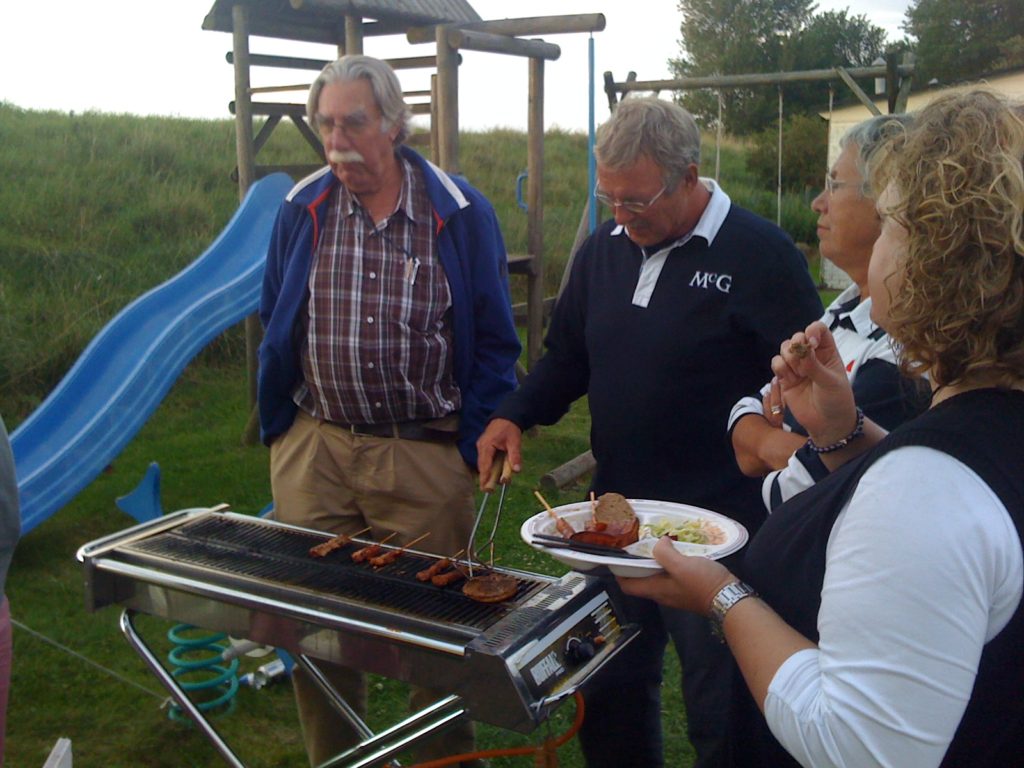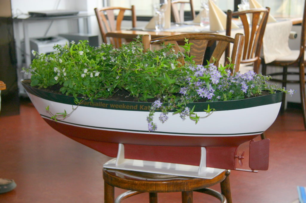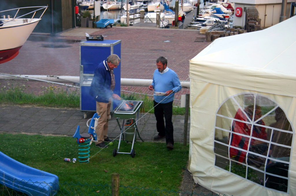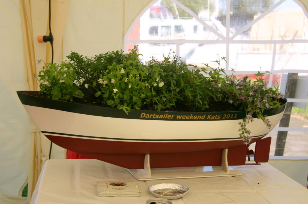 De barbecue was prima verzorgd, maar het klapstuk was wel de puzzeltocht (inleveren na terugkomst met de boot) Daar werd niet strikt de hand aan gehouden, maar het was toch een vorm van gerechtigheid dat uiteindelijk de VIA VIA de hoofdprijs won: een schaalmodel van een Dartsailerromp, gevuld met bloemen, fraai gemaakt door Erik Driessen.