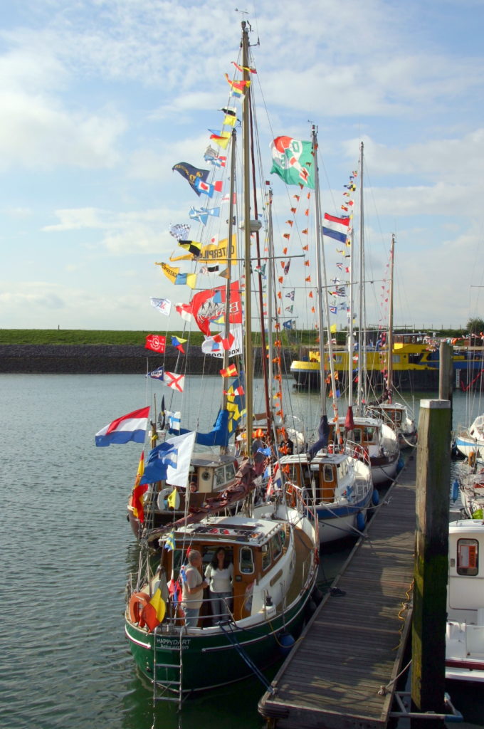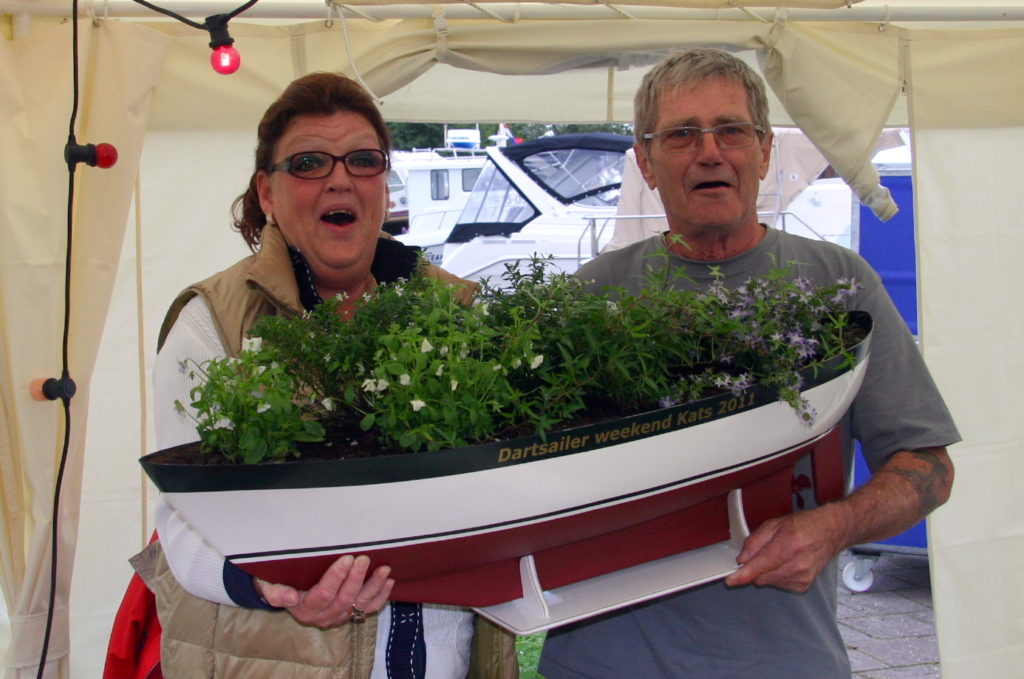 Dat het al een paar weken mis was met het weer bleek uit de lage opkomst, er lagen slechts 6 Dartsailers afgemeerd aan de tot “Dartsteiger” omgedoopte A-pier bij Van de Rest Marina in Kats. Daarnaast kwamen drie leden en een aantal partners op zaterdag met de auto waardoor er toch een redelijke opkomst was.