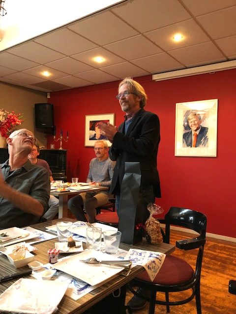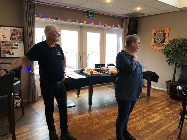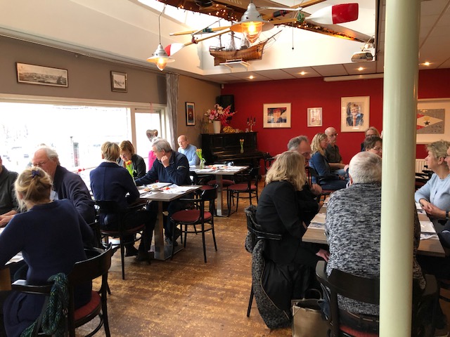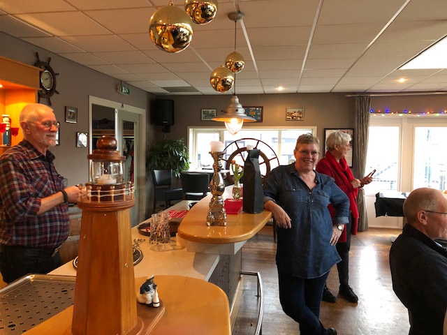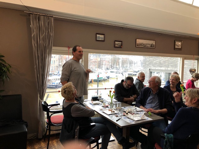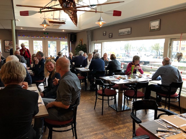 Daarna was er een lunch in de sociëteit van de Dordtse Zeil en Roeivereniging. Henk de Vlaam en Henk Paul van der Veer hebben bij de lunch natuurlijk Tim en Els bedankt en een paar praktische zaken over de vereniging gedeeld. En natuurlijk kondigde Theo de Jong daar zijn plannen voor het toen nog geplande Pinkster weekeinde aan.