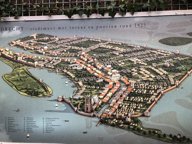 Na de voortreffelijke lunch was er een stadswandeling met gidsen van het Gilde Dordrecht. Hoewel het een beetje regende waren de verhalen boeiend en nu weten we ook dat Dordrecht een echt eiland is met een grote maritieme geschiedenis. De dag werd afgesloten met een kopje koffie of een drankje in de sociëteit.